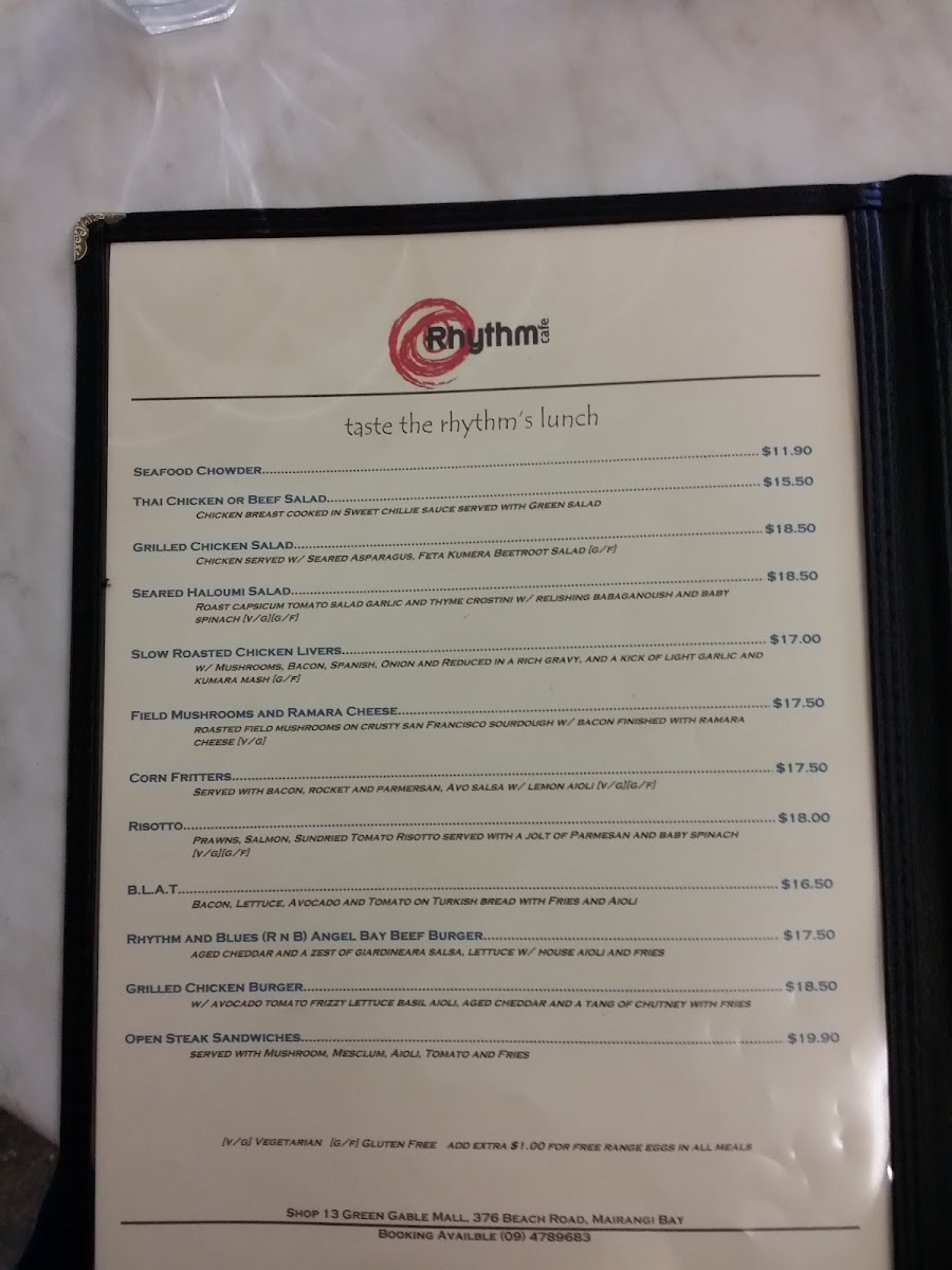Rhythm Cafe Menu